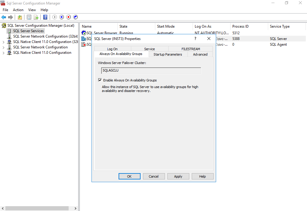 Now, enable Always on Availability Groups features in the SQL Server Configuration Manager of the SQLNOde3. You must restart SQL Services after enabling AG features.