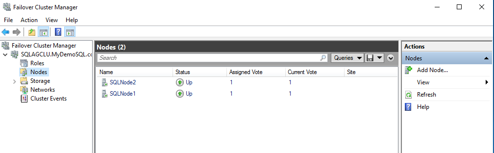 - Join SQLNode1 and SQLNode2 into [MyDemoSQL] domain