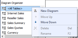 In the data source view, you can already create the relationships between the fact table and the dimensions. This will help you later when building the cube: the dimension usage tab will already be prepopulated. Also create a diagram for each star schema (one fact table + related dimensions). This will declutter the overall view and it will be easier to make changes to the model at a later point in time. For example: you have added a new dimension table to the data source view and you want to create a new relationship. If you have a large model with hundreds of tables, this can be a challenging task. You can create a new diagram by right-clicking the All Tables node in the Diagram Organizer.