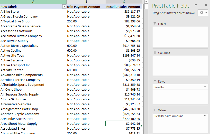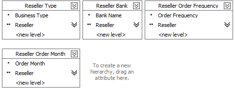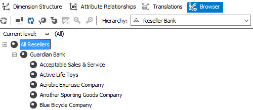 In the Reseller dimension, we can see some attributes have been disabled (notice the gray icons).