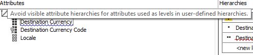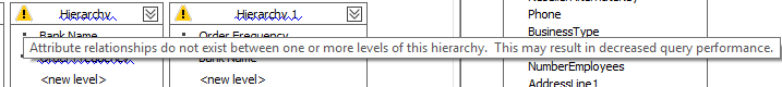 However, not all hierarchies might lead to optimal performance. SSAS warns you about this (see the yellow triangle with exclamation mark):