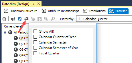 These attributes are also member properties of Calendar Quarter. We can easily check this in the dimension browser: