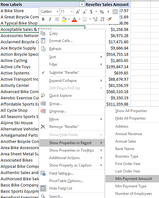 You can also add member properties by right-clicking an attribute and selecting an item from the list Show Properties in Report.