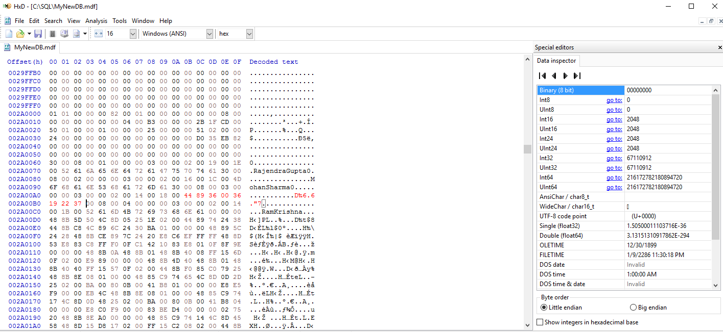 We use a Hex Editor in this article to open the database file. You can download it from the URL.