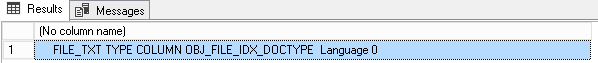 --USE <YourDb>; DECLARE @tsql NVARCHAR(MAX); DECLARE @LineFeed CHAR(2) = CHAR(13) + CHAR(10); SELECT @tsql = CASE WHEN LEN(@tsql) = 0 OR @tsql IS NULL THEN '' ELSE @tsql + ',' + @LineFeed END + ' ' + c.Name + ' TYPE COLUMN ' + refc.name + ' ' + ' Language ' + CONVERT(VARCHAR(10),language_id)+' ' + CASE WHEN fic.statistical_semantics = 1 THEN 'STATISTICAL_SEMANTICS ' ELSE '' END FROM sys.fulltext_index_columns fic INNER JOIN sys.columns as c ON c.object_id = fic.object_id AND c.column_id = fic.column_id INNER JOIN sys.columns as refc ON refc.object_id = fic.object_id AND refc.column_id = fic.type_column_id WHERE fic.object_id = @CurObjectId -- SELECT @tsql |