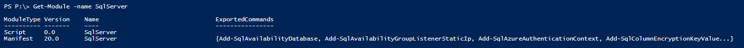 Type the command below at the PowerShell prompt to verify that the SqlServer module was imported correctly: