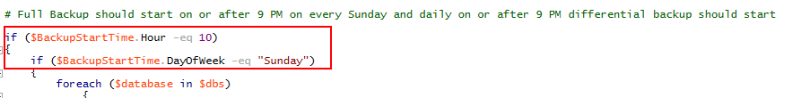 # To perform the full backup $smoBackup.Action = "Database" # To turnoff Differential backup $smoBackup.Incremental = $False #Name of the database to backup $smoBackup.Database = $dbName |