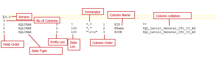 SQL Server supports two kinds of format files: XML format files and non-XML format files. The non-XML format file is the original format supported by earlier versions of SQL Server.