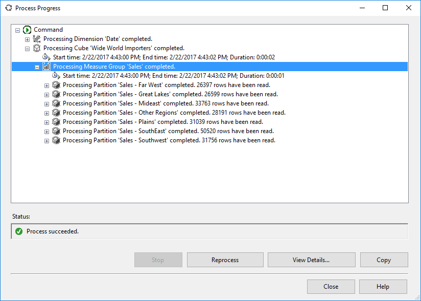 The first benefit becomes clear after we’ve deployed the cube, during processing: