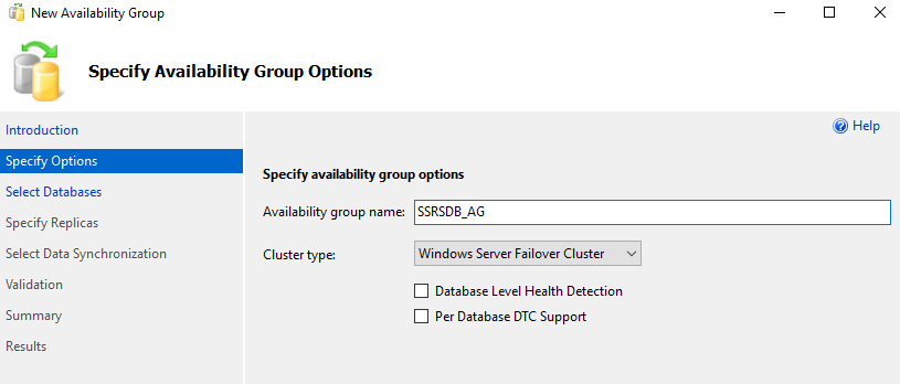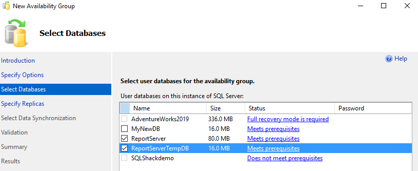 In this article, we create a new availability group for both reporting services databases. You can add databases in an existing availability group as well. You can refer to earlier articles for detailed steps on creating a new availability group.