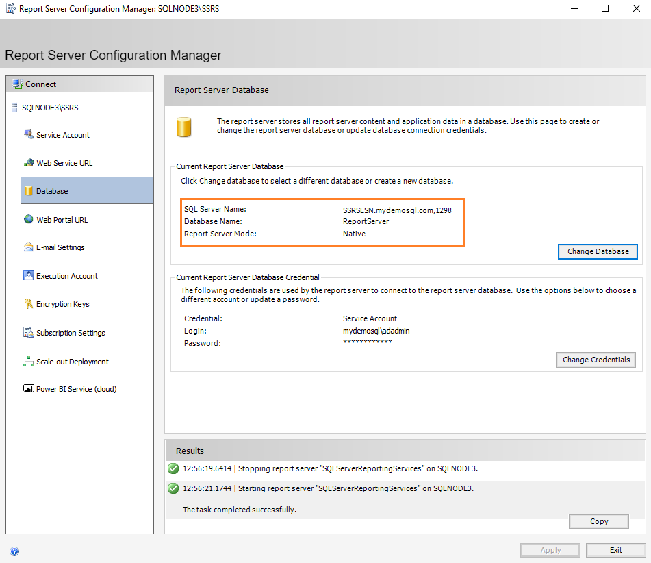 Reconfigure Report Server database configurations to SQL listener