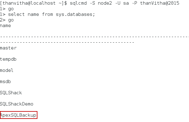 In the following example, we are connecting to the SQL instance (node2) on Linux.