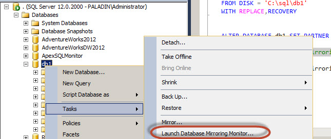 You can monitor your Database Mirroring using the Launch Database Mirroring Monitor
