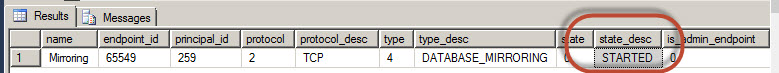 You can also, check the mirror status using the sys.database_mirroring_endpoints view: