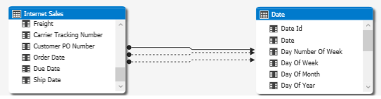 After creating these relationships, one full and two dotted line will appear (because of specified order):