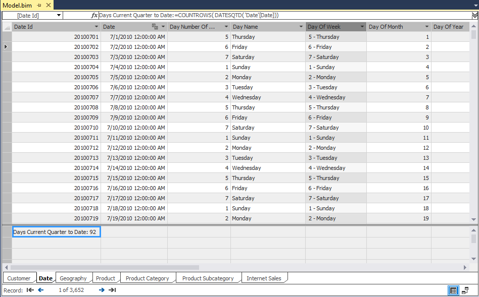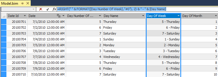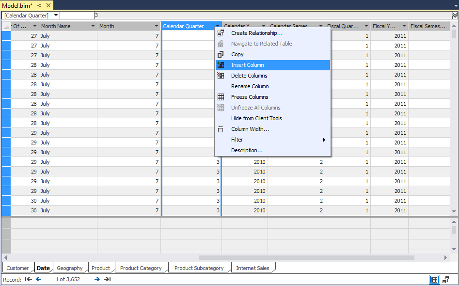 Note: FullDateAlternateKey column in Date table must get title “Date”, because if doesn’t, the structure of the Tabular model database will be compromised.
