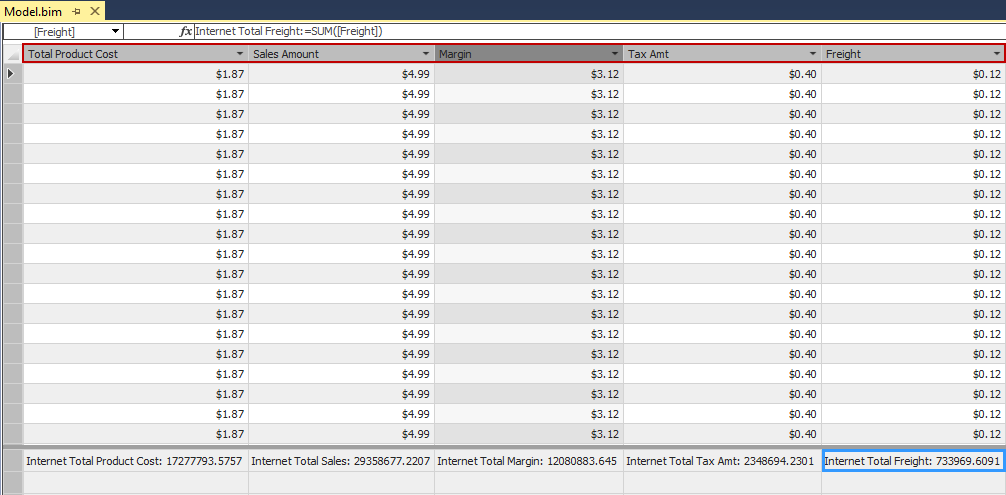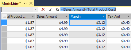 In Internet Sales table, create Margin calculated column, besides Tax Amt column:
