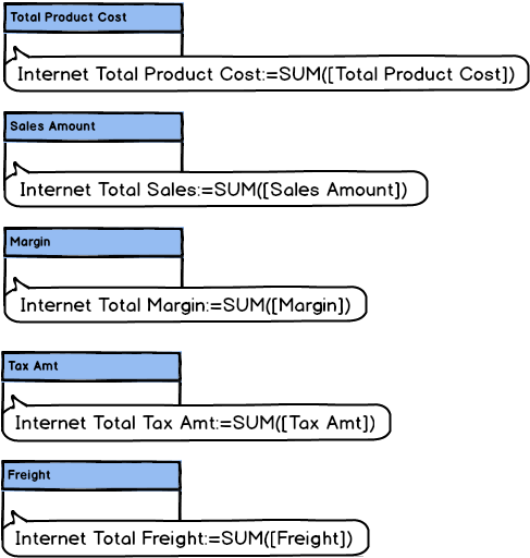 In the Internet Sales table, several measures will be created, with performing the following steps: