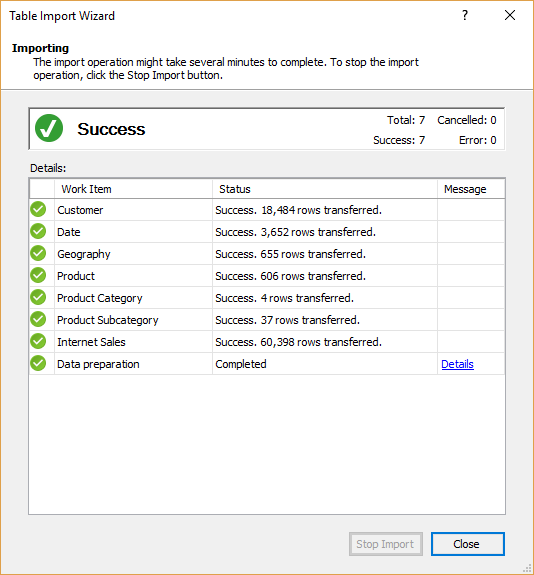 3. Importing data into the SSAS Tabular model database