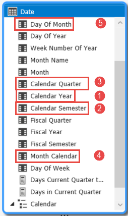 Create Calendar hierarchy in Date table, and add columns, following the order: