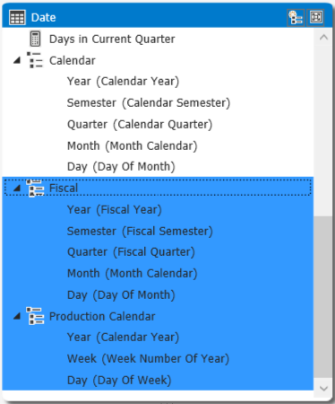 Create also the Fiscal and Product Calendar hierarchies, repeating the previous methods: