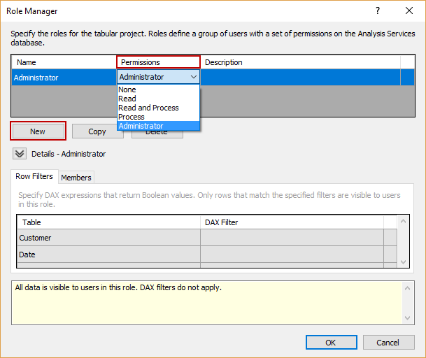 Note: For making sure that Tabular database will be fully accessible, add the current Windows user within Members tab: