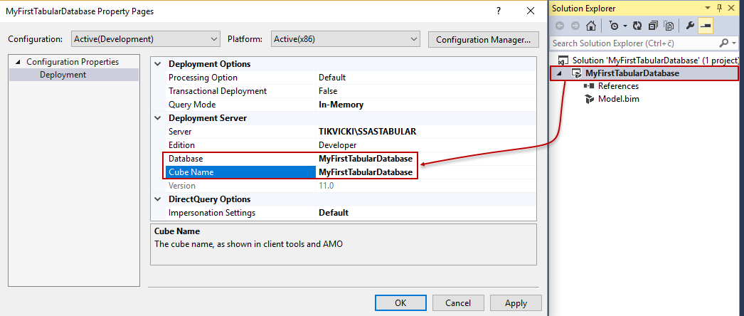 Note: Database and Cube Name can be customized, just make sure to name it properly, using CamelCase normalization.