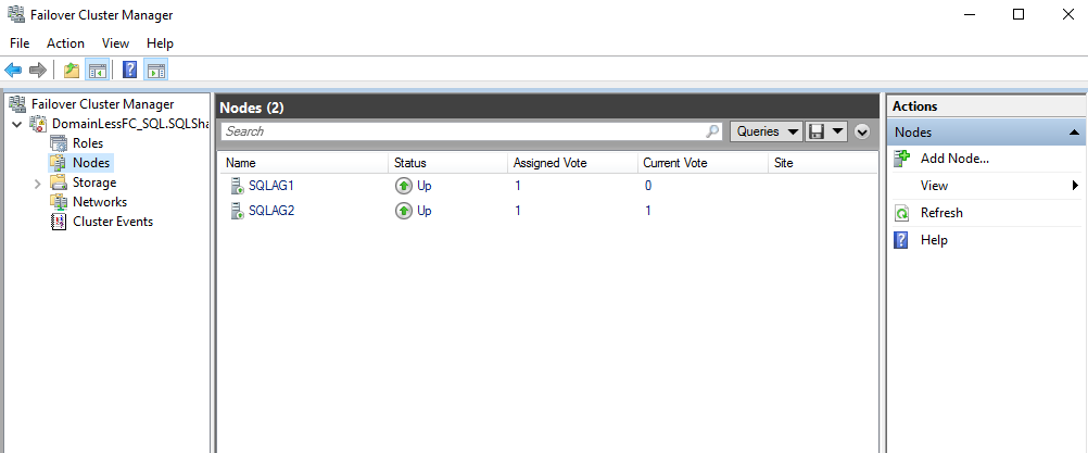 Click on the Nodes. You should be able to see both SQLAG1 and SQLAG2 nodes in the list.