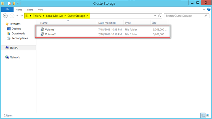 It provides us with a very highly scalable solution where we can have virtually unlimited disk drives with no dependency on the drive letters. You can see in the below screenshot how CSVs get created when deployed. Basically, a folder named ‘ClusterStorage’ gets created under C$ on every node within the windows server failover cluster under which CSVs are placed. You can log in to any node of the cluster to access these disk drives.