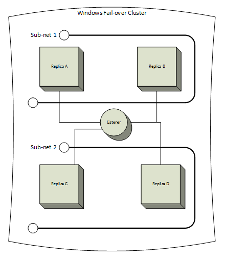 The most important aspect of this change in requirements is how you configure quorum. With Database Mirroring, your database was either available or not, and your witness either could communicate with the replicas or could not. Clustering provides advanced configurations for various servers, file shares, or disks to vote on who has quorum but also can be unforgiving. Misconfigured quorum can cause a complete cluster outage even when normal events take place. Using the example image above, this architecture crosses into two sub-nets because replicas A and B are in data center 1 and replicas C and D are in data center 2. If connectivity between the data centers is less than ideal, a minor blip in the connection could cause a loss of heartbeat singles. When quorum is configured correctly there will also be an odd number of votes still online but, if not planned out thoroughly, this normal event could cause the cluster service on all nodes to shut down. This is a safety feature designed to prevent a split-brain effect where two halves of the cluster each think that they are the real cluster.