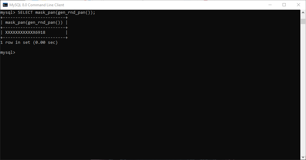 mysql> SELECT mask_pan(gen_rnd_pan());