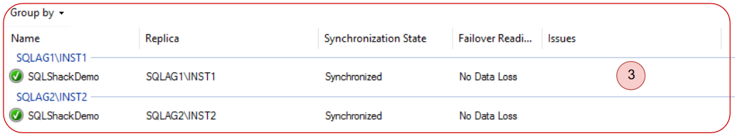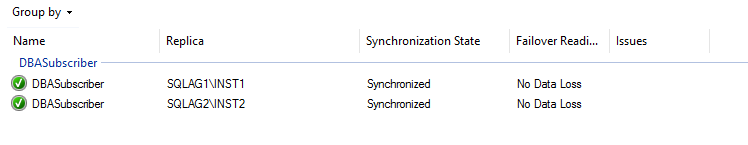 Here, it shows all configured availability groups in your SQL instance. A green tick for each availability group shows it is in a healthy state.