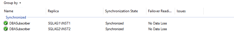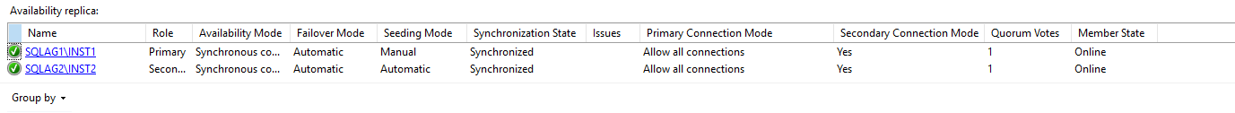 Group by: Availability group replica details