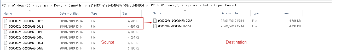 Let us say we just want to copy few files from SQL Server FILESTREAM container to local disk. We copied the above-highlighted objects into different drive.