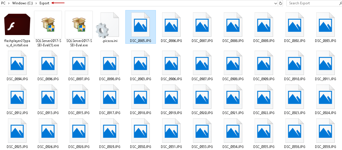 Now go to the export folder ‘ C:\Export’ and view the 13 files. It shows that the export task is also successful.