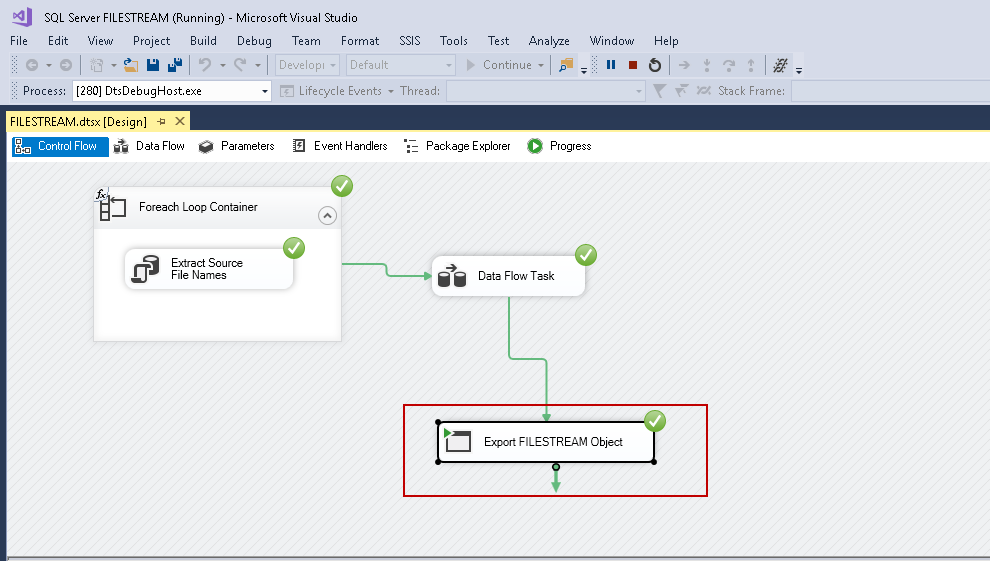 In the previous article, Importing SQL Server FILESTREAM data with SSIS packages, we created an SSIS package to import the files into SQL Server FILESTREAM tables. We want to use the same package to export the objects into the destination folder as well.
