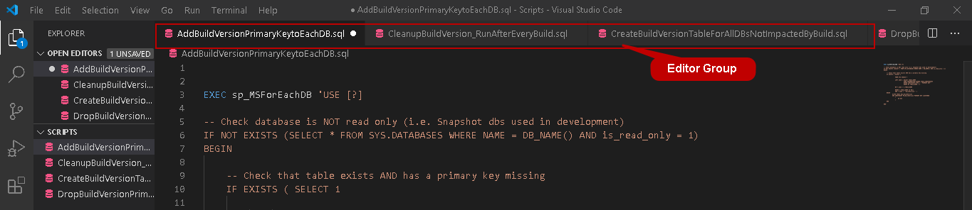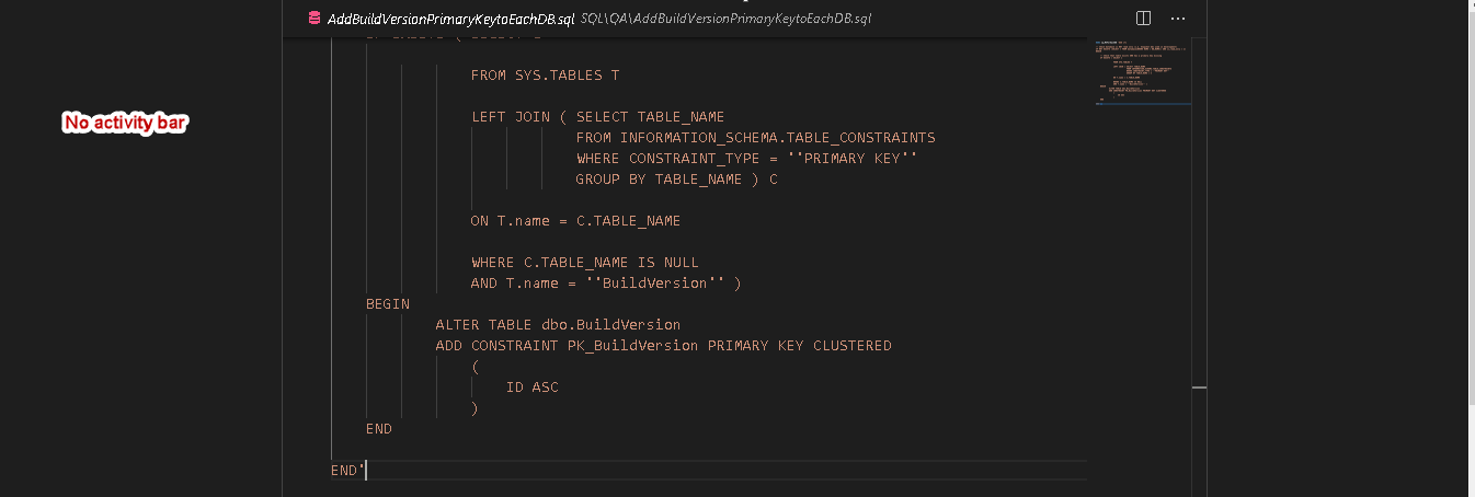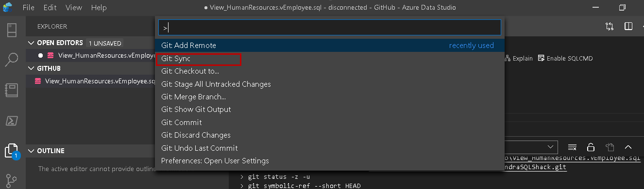 VS Code provides a code outline feature to have a high-level overview of code, quickly navigate to a particular area. It is similar to the Scroll Bars feature you get in the recent versions of SQL Server Management Studio. You can refer to New feature in SQL Server Management Studio 2016 – Scroll bar for more details.