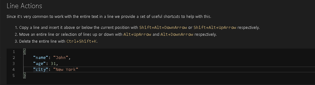 For example, if we can copy a line and insert it at the above or below position using the shortcut key specified in the example. It is described well so that you can follow the steps and learn these productivity features.