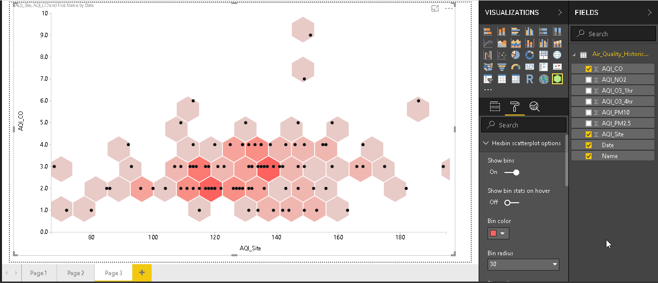 The Hexbin scatterplot, in Power BI Desktop, provides a way to visualize data using various bins and data points based on the density. We can also use this chart with lots of customization options which helps us to do the analysis of complex data in a single chart.