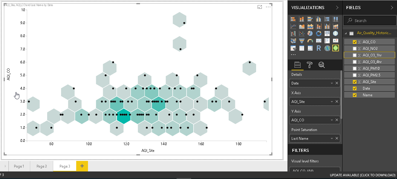 Change the data fields and the Hexbin Scatterplot is changed accordingly.