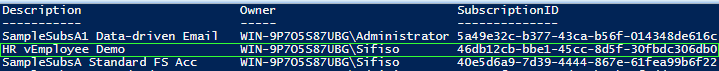 Whilst Figure 2 showed an output of subscriptions owned by the Administrator account, the output of Script 3 (shown in Figure 4), further retrieved subscriptions owned by account name WIN-9P7O5S87UBG\Sifiso.