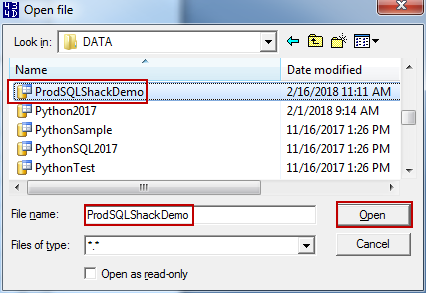 - Browse to the path of the mdf file and select it
