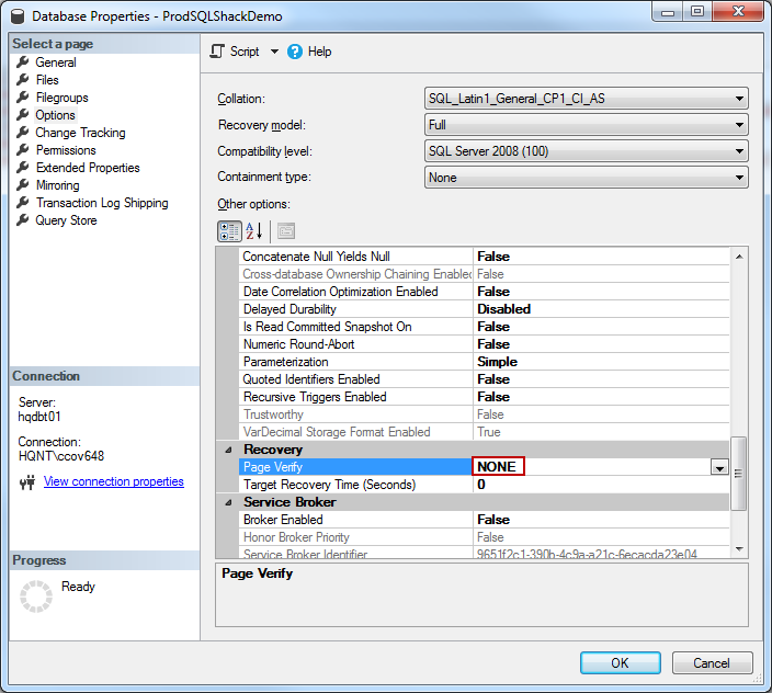 ALTER DATABASE ProdSQLShackDemo SET PAGE_VERIFY NONE |
