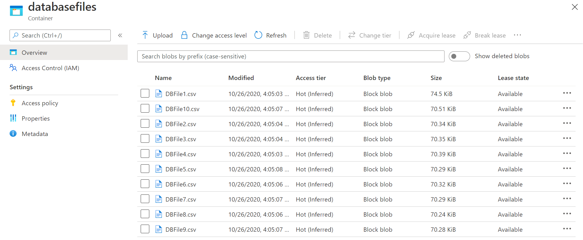 After executing it, you will see that, as we have 10 files in the source container that meets both CSV and 1KB size conditions, the files will be copied to the Azure SQL Database successfully, as shown below: