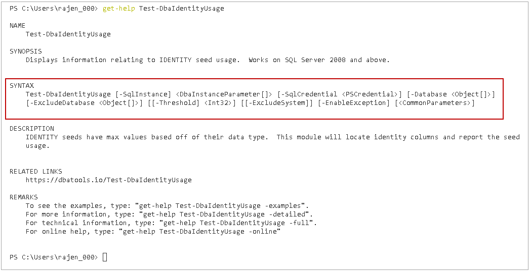 >Get-Help Get-DbaDbIdentity |