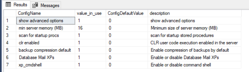 FROM sys.configurations SysConfig