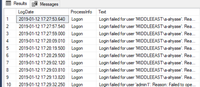 EXEC sp_readerrorlog 0, 1, 'Login failed'