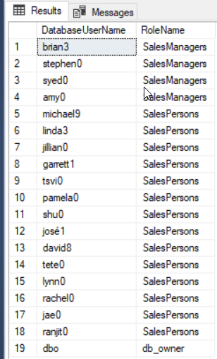 SELECT USER_NAME(memberuid) As DatabaseUserName, USER_NAME(groupuid) AS RoleName FROM sys.sysmembers