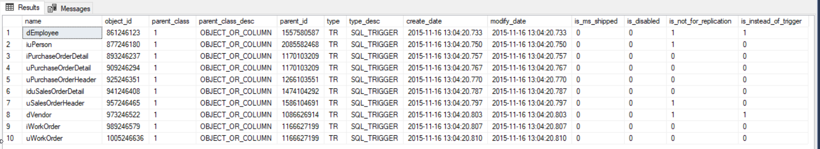 select * from sys.triggers