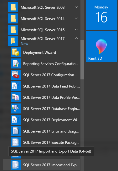 There are several ways to initiate the SQL Server Import and Export Wizard: